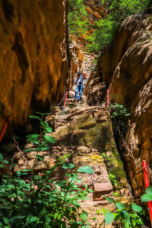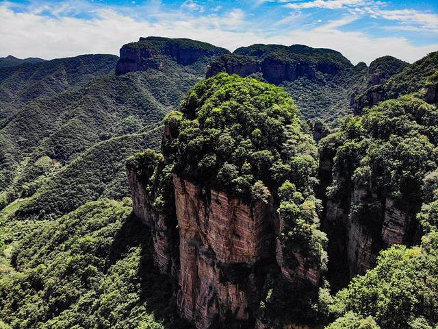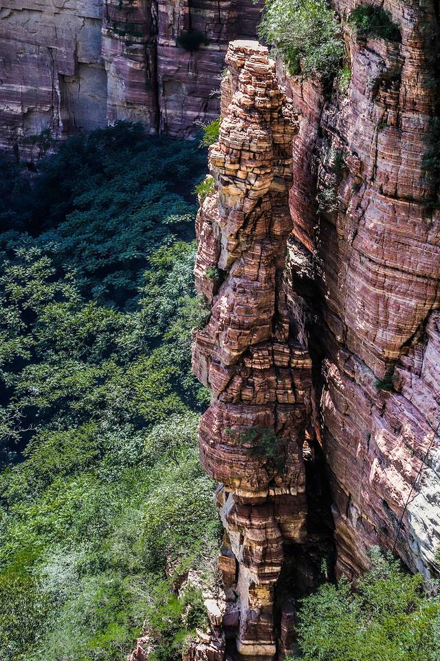 说起嶂石岩大家可能有一些陌生,“嶂石岩地貌”有着这五大特点:首先是丹崖长墙连续不断,并且阶梯状陡崖贯穿全境,还有“Ω”形嶂谷相连成套,还可以看到棱角鲜明的块状结构以及沟谷垂直自始至终,这里奇特的地质结构,让很多山上的植被从岩石缝中生长而出,非常漂亮、奇异,嶂石岩的厉害之处,是用其名字命名了地貌——嶂石岩