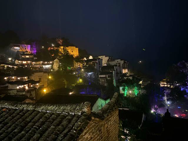 ,还有一条可以看花海的地方,那个地方楼主没去,因为楼主来的时候,下雨了,天空不作美,所以楼主有点遗憾,没看到秋晒,也没看到花海,然后索道如果你在五点没你下去的话,就只能等到八点半才能下去了,楼主为了等夜景,所以选择了八点半下去,但是可能由于是淡季的原因,不是所有的灯都打开了,只是打开了房前的灯笼,但是景色也足够美了