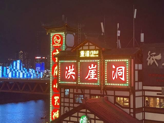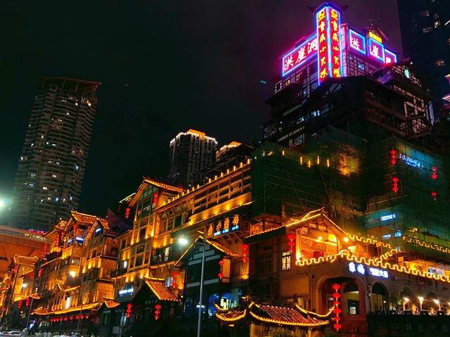 ……走过去十分钟左右~想看洪崖洞全景,建议去洪崖洞旁边的桥上看,拍照的的效果好点~毕竟洪崖洞楼前人太多~不是太好拍全景,楼主是拍的侧景