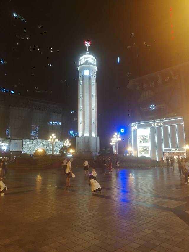 晚上回重庆,路上遇到堵车,堵了一个多小时,到重庆都10点了,赶紧找一家餐厅随便吃了碗小面,又逛了逛解放碑,此时下雨了,打不着车,只好走着回宾馆