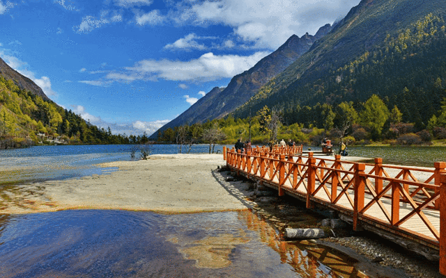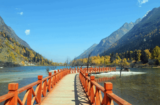 每到这个时候,毕棚沟就变成了一个充满无限惊喜的彩色世界。树叶被染成为绮丽的金黄色,红色石滩也在河道中冒出头试探。