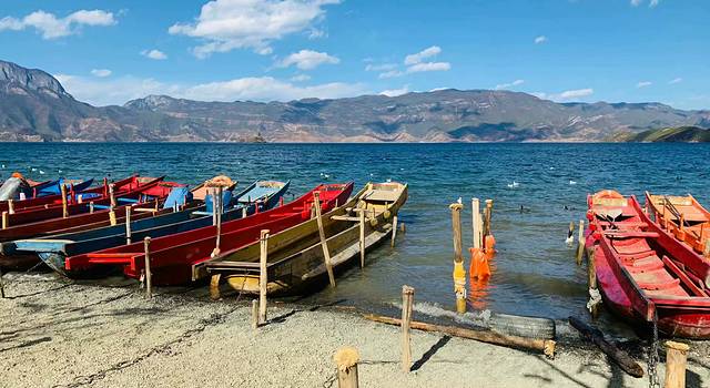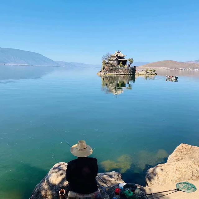 雨停后我们决定去里务比岛,就在放着很多猪槽船的那里买票,感觉真是很随意的一个售票点,像当地居民自营的,还好风平浪静,不然让我一个深水恐惧症患者都要吓死。听船夫说里务比岛夏天来有很多蛇,说不定在船上就能看到蛇在水里游,似乎旁边有个蛇岛,但是看地图并未标注出来,可能也是我记错了,还有水性杨花5-10月为花期,我们去得不凑巧,没看到,也叫海菜花,是中国独有的沉水植物,有净化水质的作用,对水质的要求很高,现已被列为濒危物种植物,但是丽江有很多餐馆都将这作为一个菜品,就是不知真假,网上找了个图