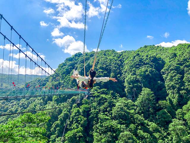 由于悬崖秋千比较惊险刺激,所以恐高的朋友如果想玩可以找工作人员把悬挂的角度调低一些,减少挑战难度!