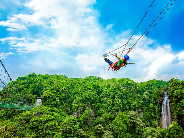 8米高的秋千,建于玻璃悬桥旁200多米高的悬崖边上,让人以血脉喷张的速度,飞向悬崖高空,视线范围内没有任何阻挡,刺激指数爆表。