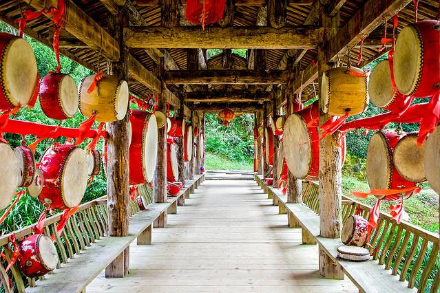 侠天下的西门、长生、逍遥、江湖四座廊桥,是以朱熹“忠孝节义,鱼跃鸢飞”思想而建造的。漫步其间,感悟朱子文化的同时,还有一份仙侠谷地的慢调宁静。