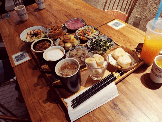 有一天晚餐点了一个套餐,端上桌时就能感受到这个套餐超实在,满满一大桌。内容很丰富,味道也是杠杠的。真是应有尽有,配上当地特色的油茶作为饮料。啧啧啧。