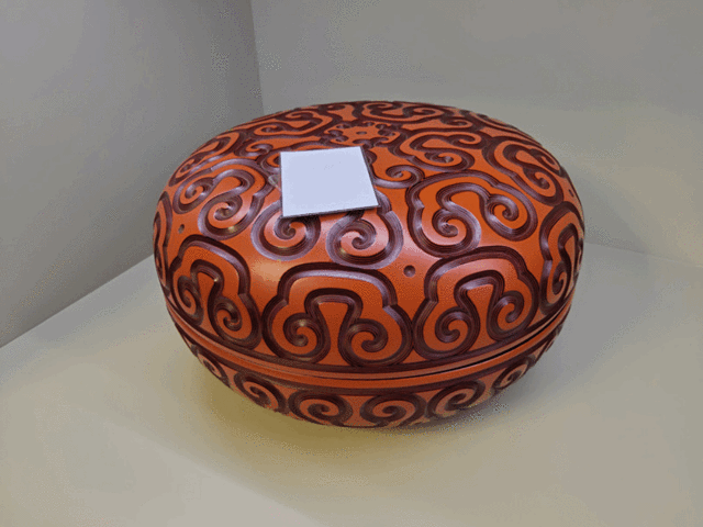 漆器推光是用一种压力,比如手,对漆的表面进行推压,使得漆器表面的分子在一定温度下结膜,漆面才会绽放出光亮。而要靠推光的方式做成如镜面般的光亮,需要花几个月的时间反复地推才能最终呈现,如果推的遍数不够多,是不能达到这种效果的。