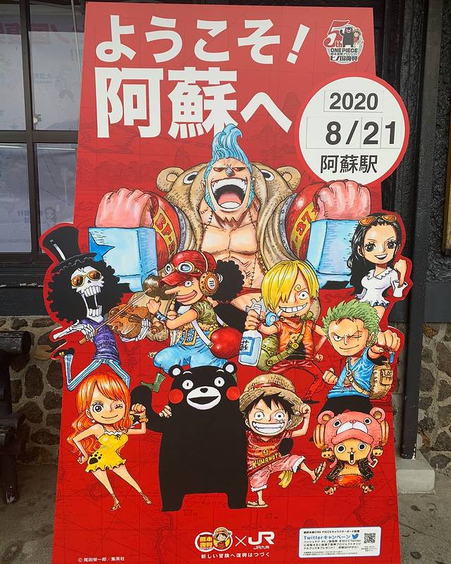 熊本县是《海贼王》创作者尾田荣一郎的出生地。随着丰肥本线的恢复,到2021年1月11日为止,将在丰肥线沿线的车站开展联合《海贼王》品牌的推介活动。