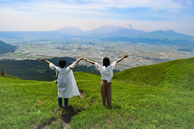 在天然的瞭望台可以360度观景,这里也是阿苏的绝佳观光景点。