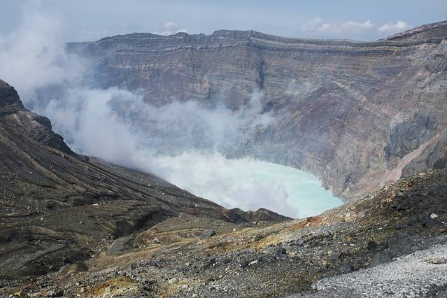 日本颇为著名的活火山之一,就坐落于阿苏。以具有大型破火山口的复式火山闻名于世。火山暂停活动的时候,人们可以登上中岳的活火山口,近距离感受自然界的奇异景观。
