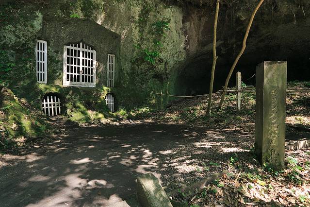 这是武家宅邸所在的殿町山谷里遗留下来的天主教洞窟礼拜堂遗迹。挖入岩盘的内部是圆顶状的祭坛。前面有5个窗户和屋顶,看起来像是洞穴礼拜堂。