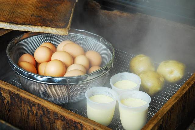 附近地区可以品尝到极致美味“地狱蒸”,通过在蒸笼中放入鸡肉、猪肉或者时令蔬菜,利用火山蒸汽制作而成。这种使用简单食材制作的菜品,不仅健康,而且味道更加醇厚,风味独特。
