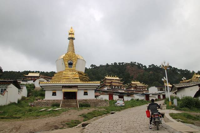郎木寺镇是甘肃甘南藏族自治州碌曲县和四川阿坝藏族羌族自治州若尔盖县共同下辖的一个小镇,白龙江穿镇而过。其中江北的赛赤寺属于甘肃碌曲县,又叫“达仓郎木赛赤寺”,江南是格尔底寺,属于四川若尔盖县,又叫“达仓郎木格尔底寺”,两座寺庙均属藏传佛教格鲁派寺庙。