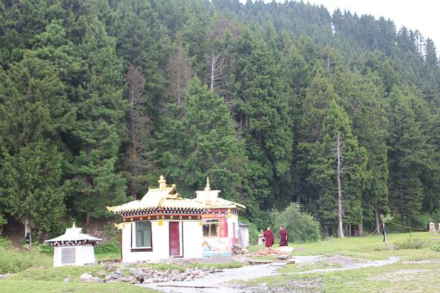 从纳摩大峡谷发源的白龙江,自源头流过约500米,即与支流桑溪河交汇,当地百姓习惯上以此河作为川、甘两省的界河。一条小溪分界又联结了两个省份,融合了藏、回两个和平共处的民族;喇嘛寺院、清真寺各据一方地存在着;晒大佛,做礼拜,小溪两边的人们各自用不同的方式传达着对信仰的执著。