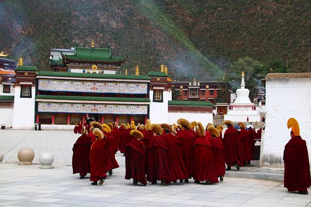 从桑科湿地前行十几公里,大名鼎鼎的拉卜楞寺就出现在眼前。"拉卜楞"是藏语译音,意为佛宫所在之地,可见它的地位,难怪人们称它“小西藏”。