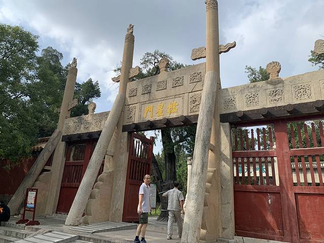棂星门建于清乾隆十九年(1754年),六楹四柱,铁梁石柱,柱的顶端屹立着四尊天将石像,威风凛凛,不可一世。柱下石鼓抱夹,使建筑风格稳重端庄。