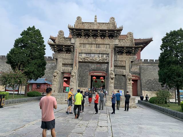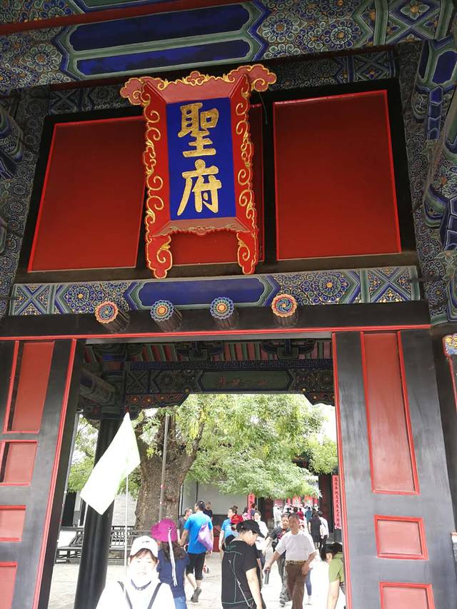 饭后开车几分钟就到了老城城门,停车场不少,随意开进离城门最近的一个,收费十元。看了一眼城门上的字眼:曲阜明故城。老公来过两次,我放心大胆的没做任何功课,向左沿城墙外围走到下一个城门入城。顺着人流,道路两旁是国内景区无差别小摊位,本来就不宽敞的道路更显拥挤,大同小异的纪念品很是倒人胃口。好在走了不远就是孔府验票口,曲阜孔子故里,尊师重教,老师凭身份证和教师证免票,一番查验后顺利进入,心情刹那间好转.....