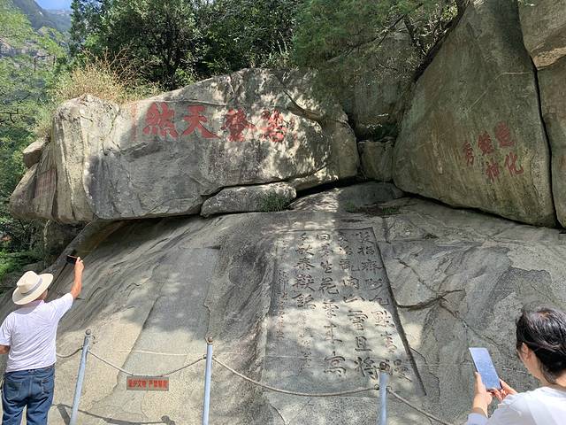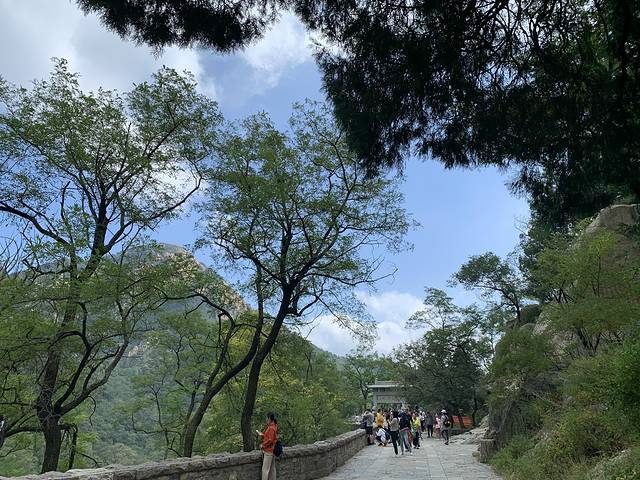 出了停车场,一条宽敞笔直的大路直通山脚,没有迟疑,我们顺路而上,走了几百米,一天门、孔子登临处、天阶、红门依次出现在眼前,赏景拍照向前,缓缓地山路旁石碑比比皆是,昨天经过大场面洗礼的我们只是略看了几眼就继续前行,腿还是有点酸痛,走到万仙楼就回撤了。