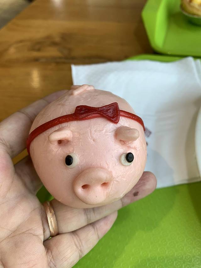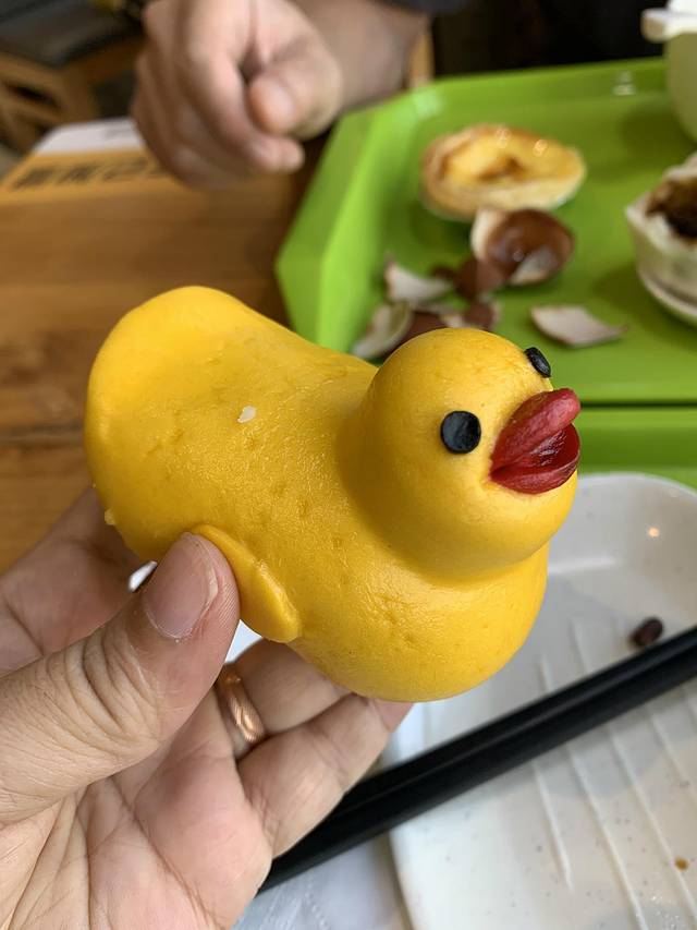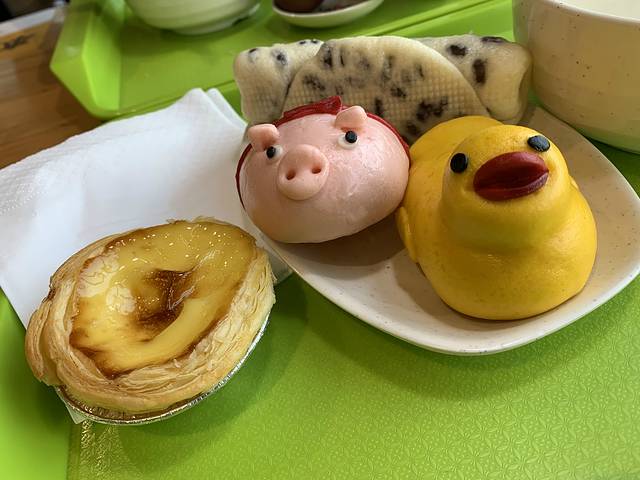 六点半起床,退房后到楼下多禾馅饼吃早餐。自取后结账,拿了可爱的小猪、鸭子造型的甜点,麦片牛奶什么的,两个人26元,非常满意。
