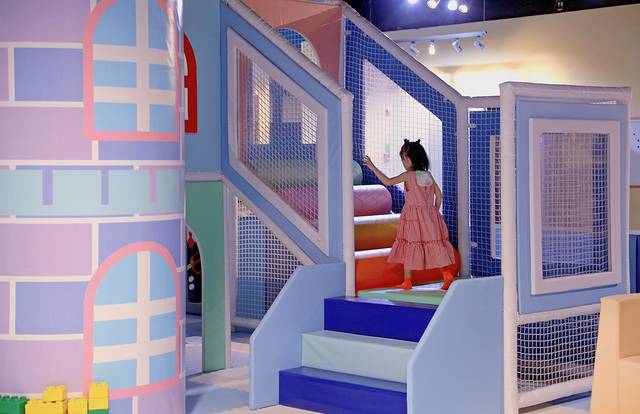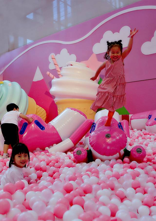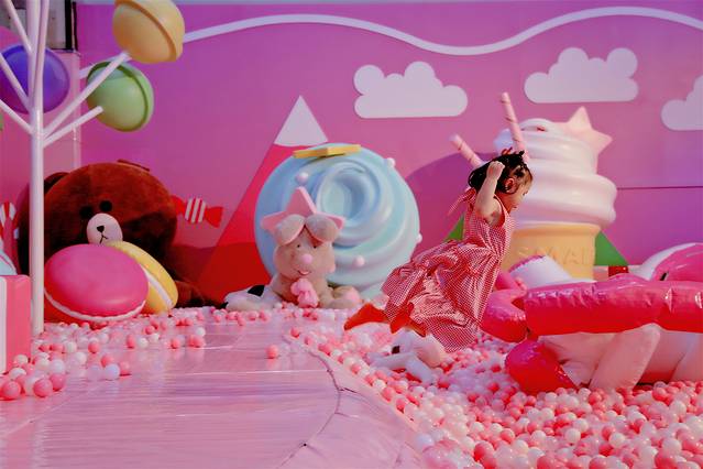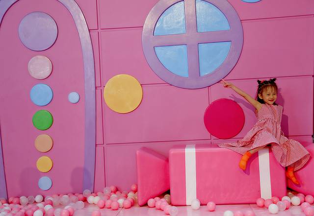 左手边,就是粉色梦想馆。听到欢乐的声音,你就知道这是专属小孩子的乐园,当你看到各种粉红色的物件,大朋友的少女心瞬间被暖化。