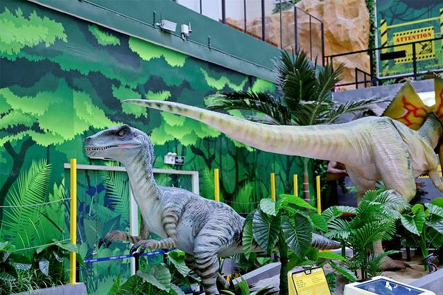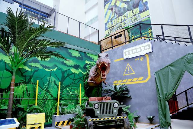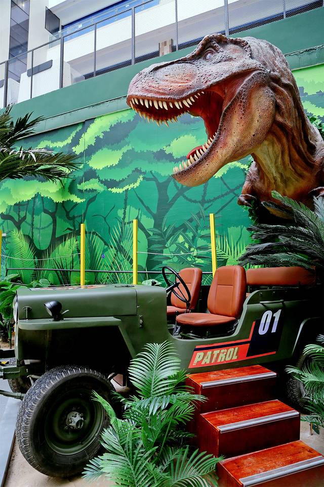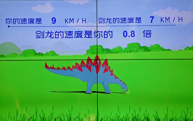 在这里还可以和恐龙亲密接触,可以体验到与各种恐龙的互动乐趣。还可以可他们PK速度、身高、体重等等。好奇的我,便自告奋勇和恐龙来了一场速度大比拼,你猜谁赢呢?