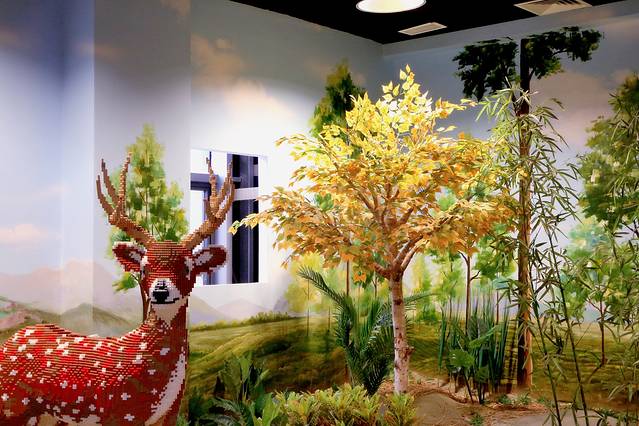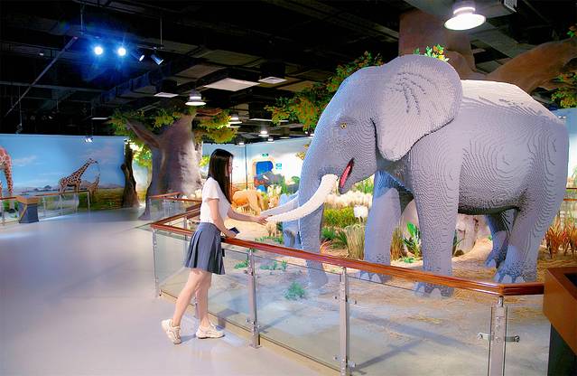 围起来的区域, “住着”各种由积木搭建而成的珍稀动物,譬如,熊猫、大象、小鹿等等,它们尽显自然灵动的态势,等着你们一并嬉笑作乐、拍照合影。
