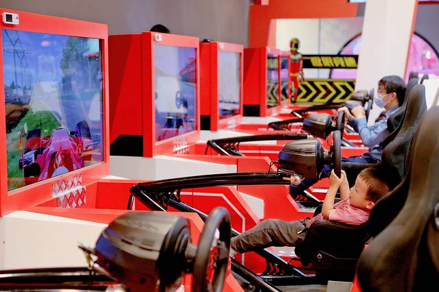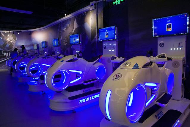 对于大朋友来说,极力推荐VR幻影摩托驾驶,带上VR眼镜,一个虚拟的太空场景便出现了,骑在摩托车上那种感觉像是真实般一样。