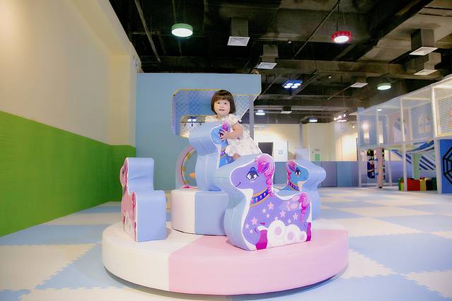 对于小朋友来说,里面确实很好玩,有秋千、滑梯、类似于旋转木马(原谅我不认识)小朋友,从城堡里爬出来、跑上去,就这样,玩得可得劲、可高兴了。