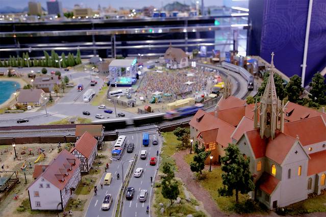 我特别喜欢这个以火车为主题打造的 欧洲 微缩景观世界,里面铁路纵横交错,各式电动火车穿梭其中,城市、码头、车站、公园、游乐场等场景。