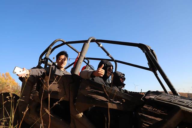 坐在UTV赛车上的感觉和在一旁观赛的感觉完全不同,一开始觉得这是一个十分冒险且不安全的一项活动,可是上车之后,各项措施保护完全打消了是这样的顾虑,引擎发动,驰骋在山野之中,感受着风吹过脸庞,扬尘四起,尽情的享受在这场勇敢者的游戏,并感受到了UTV的魅力所在。