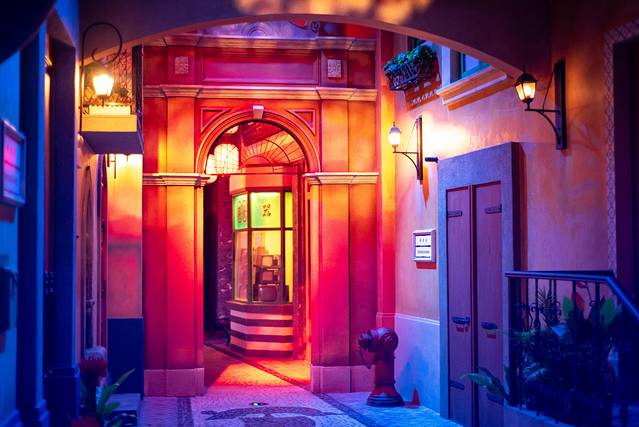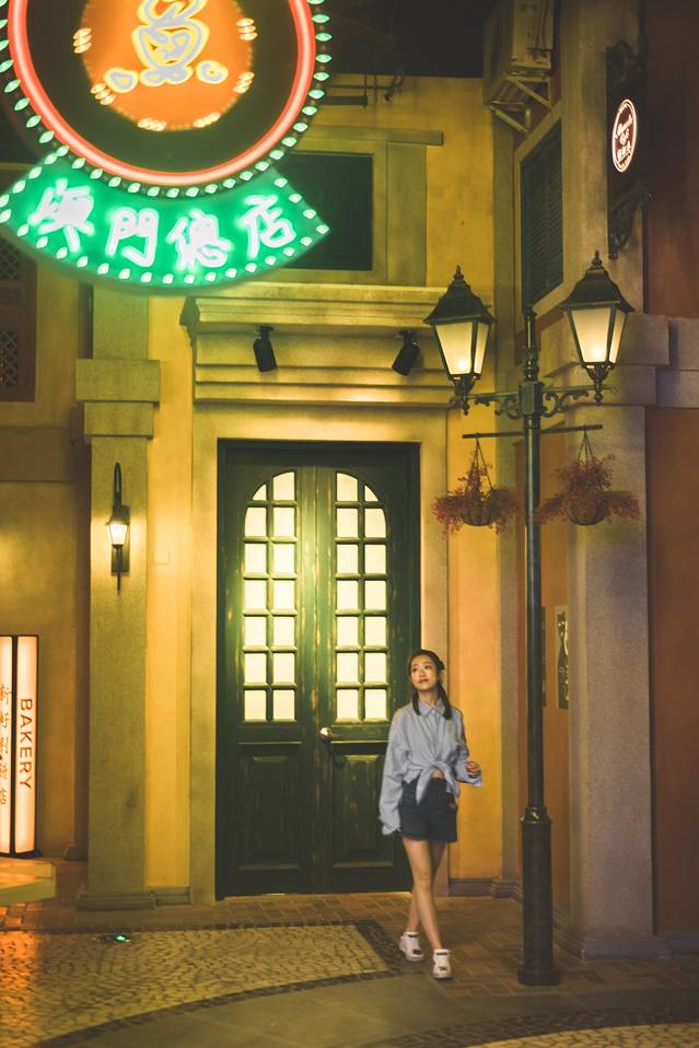横琴和澳门只是一水之隔,创新方这里也完美地还原了数十年前澳门街的夜景。