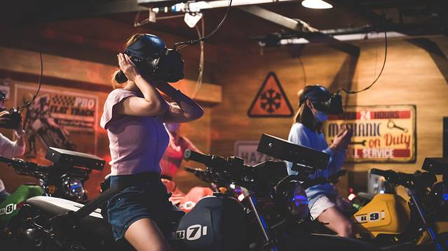 而这里最不能错过的就是《暮光之城:午夜追逐》,这个采用了越野摩托车和VR的结合的游戏,使得与狼人、吸血鬼在丛林里的战斗变得无比的真实,特别是驾驶着越野摩托飞跃大峡谷的时候,真的让人热血沸腾!