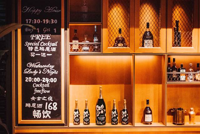 这里从17:30便开始营业,而且不同的时段会有不同的优惠推出,例如17:30-19:30,特色鸡尾酒买一送一,20:00-24:00,女士可以168元畅饮鸡尾酒。