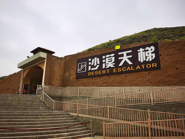 顺着景区步道走,就能看见沙漠天梯,乘着电梯上去,有摆渡车可以给载到腾格里沙漠,电梯和摆渡车都是包含在景区门票里的,但是导游并没有事先告诉,是景区里的工作人员说的