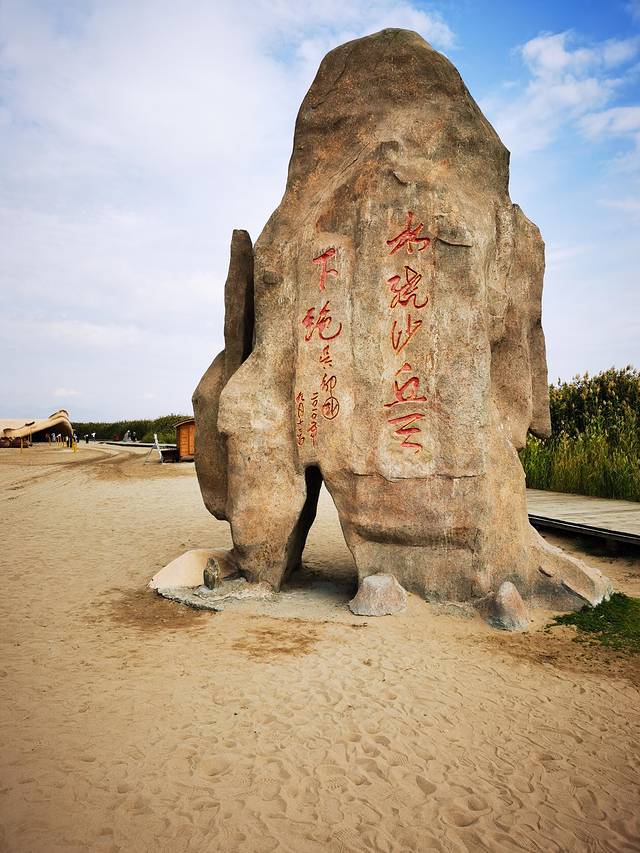 今天是跟团游,有三个景点:沙湖、镇北堡西部影城、贺兰山岩画