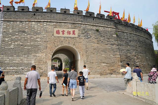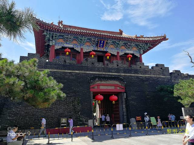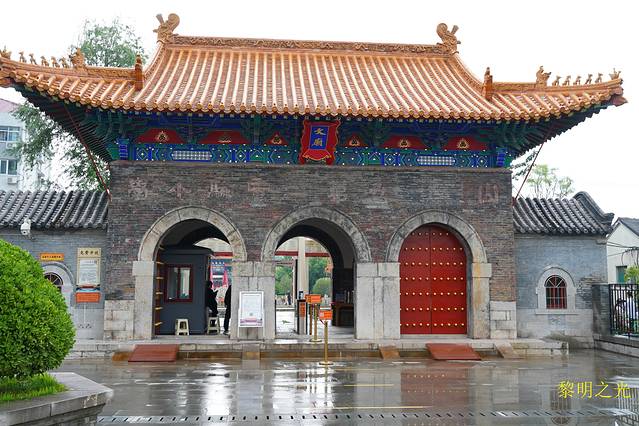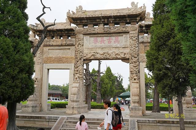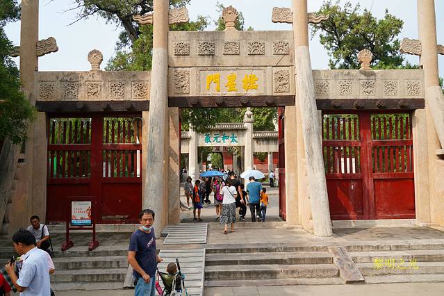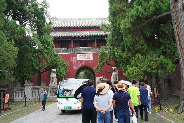 14:20我们回到至圣林牌坊门前,原计划今天去孔林,明天参观孔庙和孔府,一看时间还很早,就花15元坐一个老年妇女开的电动三轮直奔孔庙,本来是2元的车票,看游记时也多次提到曲阜交通情况,主要是为了赶时间,唉,就算捐给曲阜人民了。14:35到达孔庙万仞宫墙入口。