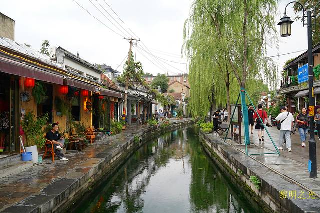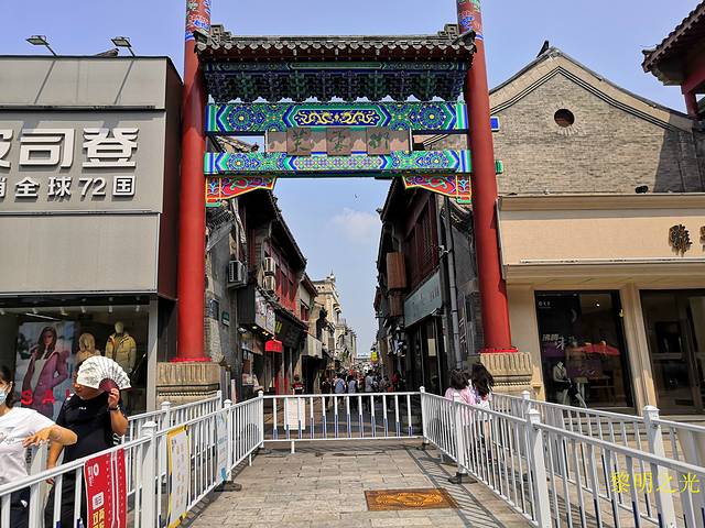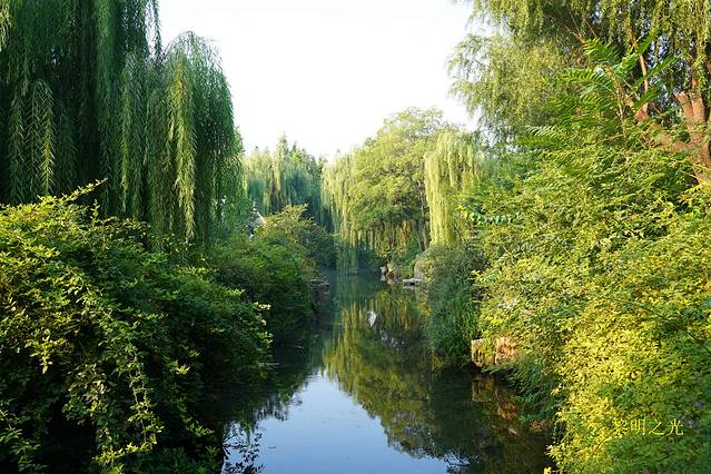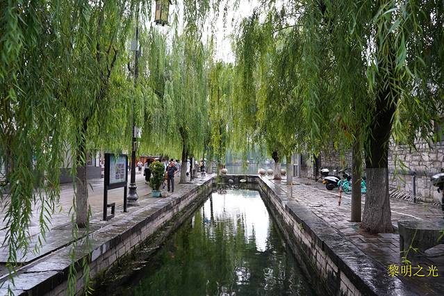 走完芙蓉街,就到了关帝庙,继续前行,就到了曲水亭街。据介绍曲水亭街是泉城济南一条闻名中外的历史文化特色老街,依然完整地保留着《老残游记》中“家家泉水,户户垂杨” 的地方,是老济南的繁华所在。初见的一刹那,仿佛到了江南水乡,街道并不太宽,街长也不过几百米,一边是青瓦老屋,一边是青青垂柳,泉水汇成河从街中穿过,街随水走,水伴街行,曲曲折折。河水清澈见底,河中泉水潺潺,一簇簇的水草随着流水舞动着婀娜的身姿。水边人家生活气息浓郁,而且门脸都设计得很有特色。走在青石板路上,看着泉水静静流淌,镜面似水,感受着老济南人在古老的街道上悠然自得的生活,心中别有一番滋味!快到百花洲,过马路就是大明湖,可是雨又下来了,时间大概16:00左右,只好向南沿泉巷去泉城路逛贵和商厦、恒隆广场,虽然是商场,但很多店面的装修都不错,给人感觉艺术性很高。
