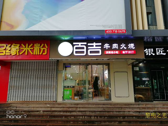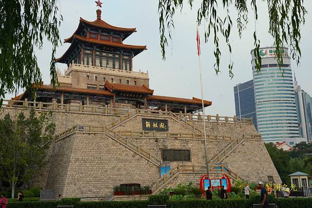 早晨6:00左右起床,外面雨下的很大,就逛商场吧,反正每到一个城市,大型商场是必逛的。做了简单攻略。8:00带了雨具,按照百度导航,去清真百吉牛火吃早点,很干净的一家小店,喝了牛杂汤、红枣豆浆,吃了牛火,其实就是肉夹馍,味道挺不错,吃完后感觉挺好。雨下的小了,先去看早上去哪儿预定的如家芙蓉街酒店房间,路不是太远,就十来分钟吧。出来后,雨好像停了,泉城广场蓝色泉型雕塑吸引了我们。泉城广场是山东省会济南的中心广场,整个广场的设计紧扣“泉”这一主题,正中央坐落着泉标—蓝色泉型雕塑,高耸的钢制雕塑和中间的铁珠构成了篆书“泉”字的造型,成为“泉城”济南市的地标性建筑,是济南的象征,也是济南乃至山东省的一道靓丽的风景线。南北两侧是狭长的绿化带,东部有荷花音乐喷泉中间是荷花雕像。喷泉东部是圆弧形的文化长廊可以登顶,有很好的视野,能拍摄喷泉和泉城广场的全景。北边紧贴护城河,过了护城河,与广场平行的泉城路上,街两侧有贵和商厦、恒隆广场、泰府广场等大商场。西边过马路就是趵突泉,泉城广场地下是银座购物广场。