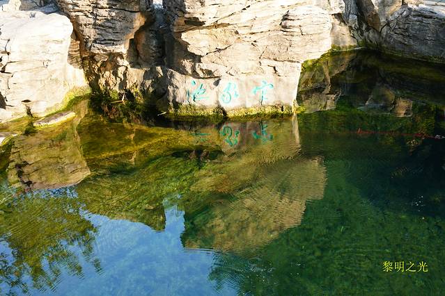 15:30我们骑单车到达黑虎泉景区,从东南门进入。据介绍黑虎泉为济南四大泉群之一,泉水涌量仅次于趵突泉,在济南众泉中占第二位。它是一处天然洞穴,水深3米,夜色中远远听更像是虎吼,该泉也因此而得名。