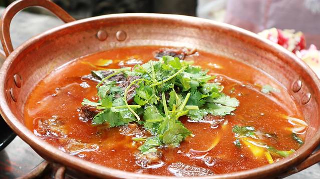 同样是铜锅系列,这款牛肉就比较有味道了,香辣口,淡淡的辣味提升了牛肉的整体的香度,牛肉炖得软烂,牛腩部分软软嫩嫩,相当美味,绝对是重口味的最爱。