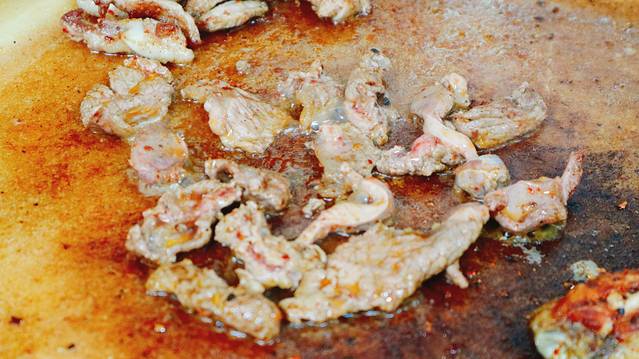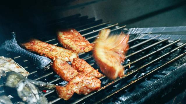 我觉得最好吃的是牛肉、五花肉和鱿鱼,煎烤的时候一定要注意火候,鸡翅要烤的时间久一点,牛肉不要烤的时间太长,容易老。五花肉一定要配着生菜吃,这样吃起来不腻,反而很香。