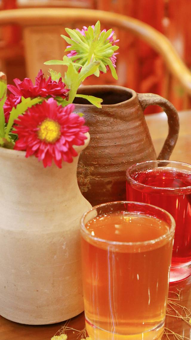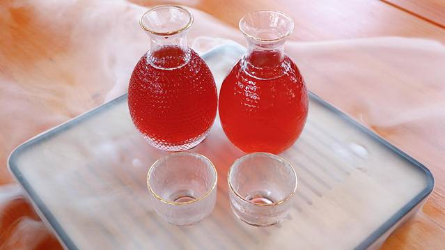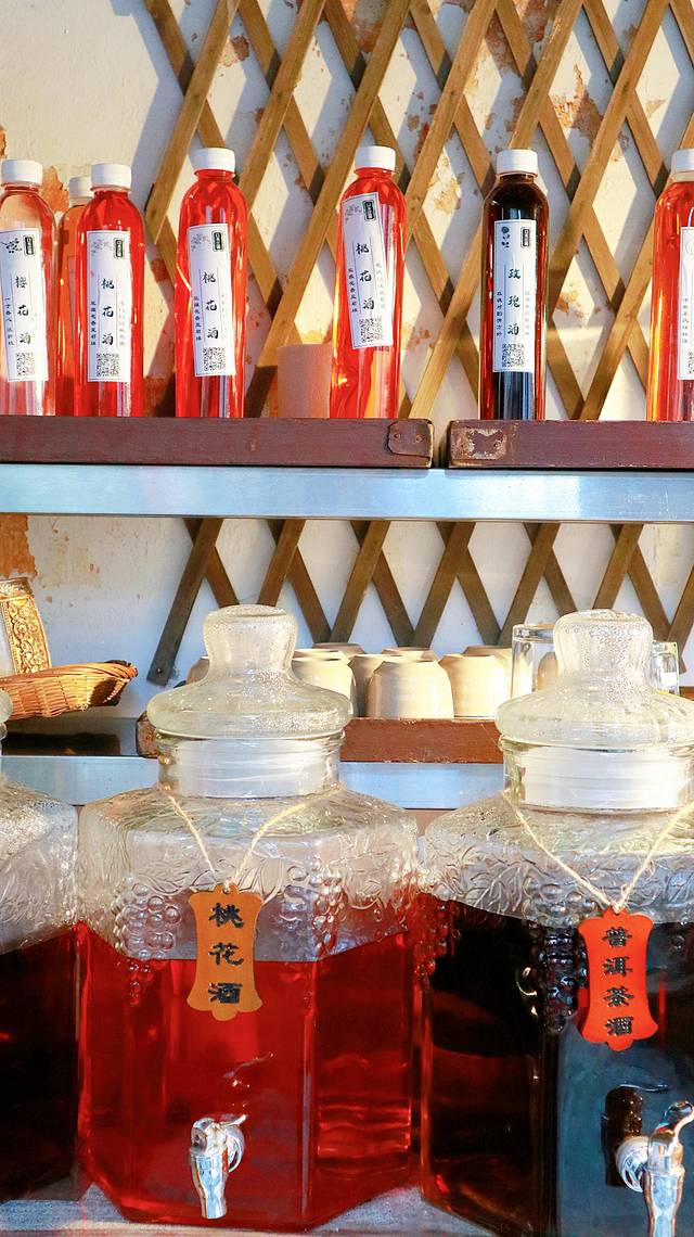 这可不是啤酒哦,一共有两壶,分别是桃花酒和玫瑰酒,喝起来度数还是蛮高的,喝完都有点过度微醺了,但还是很好喝。