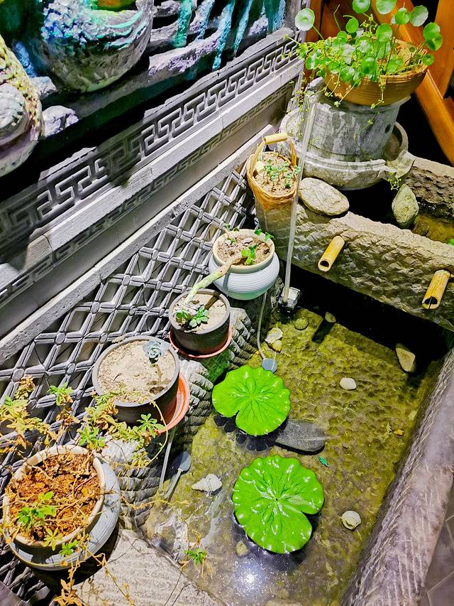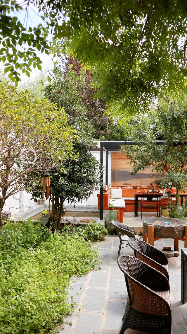 进入院子的那一刻,从门口到院深处,从品茶区到酒吧区,因为有大量绿植的造景,让整个院子显得格外的清新雅致。