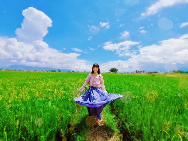 吃完美味的白族铜锅宴,我们骑着小电动在喜洲古镇外找到了一大片的稻田,真的是非常的漂亮,蓝天白云稻田,真的有一种宫崎骏漫画的感觉,妹子们一定要来这边拍照哦,田园小清新的照片在这边绝对拍的出来。