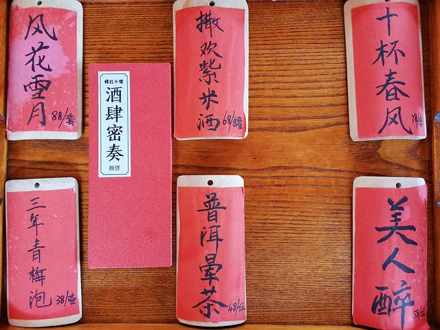 真不愧是古风酒肆的,进店就会发现浓浓的古风味,精致的木窗、桃花的点缀,甚至还有古筝可以试弹,音乐也是古风小曲,在营造氛围上还挺用心了的!