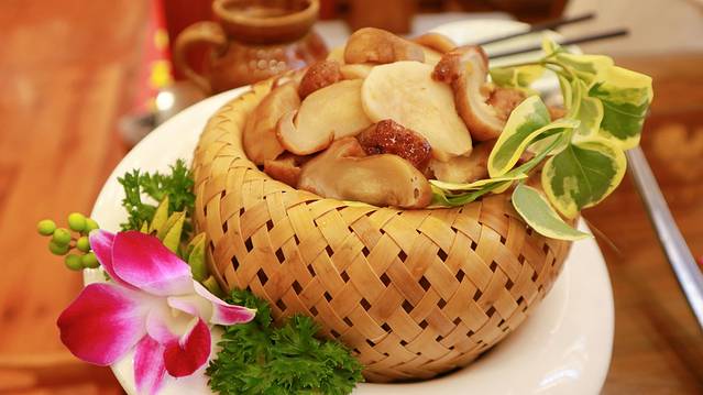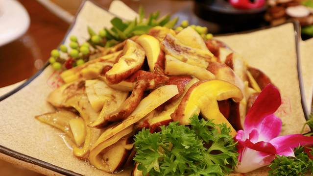 用云南特有的芭蕉叶包着菌子,吃的就是菌子的本味,非常香,而且菌子口感各异的特性,也使得这道菜不再单调。