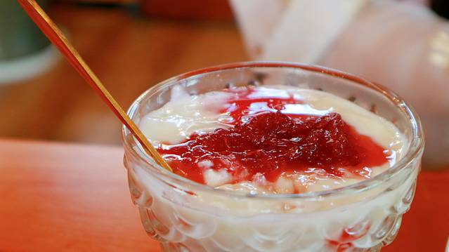上一次我们点的是玫瑰酒和雕梅酒,这次我们点的是杨梅酒和甜米酒,杨梅酒少了一丝的酸,比雕梅酒更甜一些,很好喝,甜米酒虽然也很好喝,但跟大理的花果酒比就会稍有逊色。