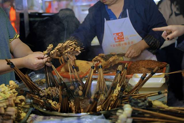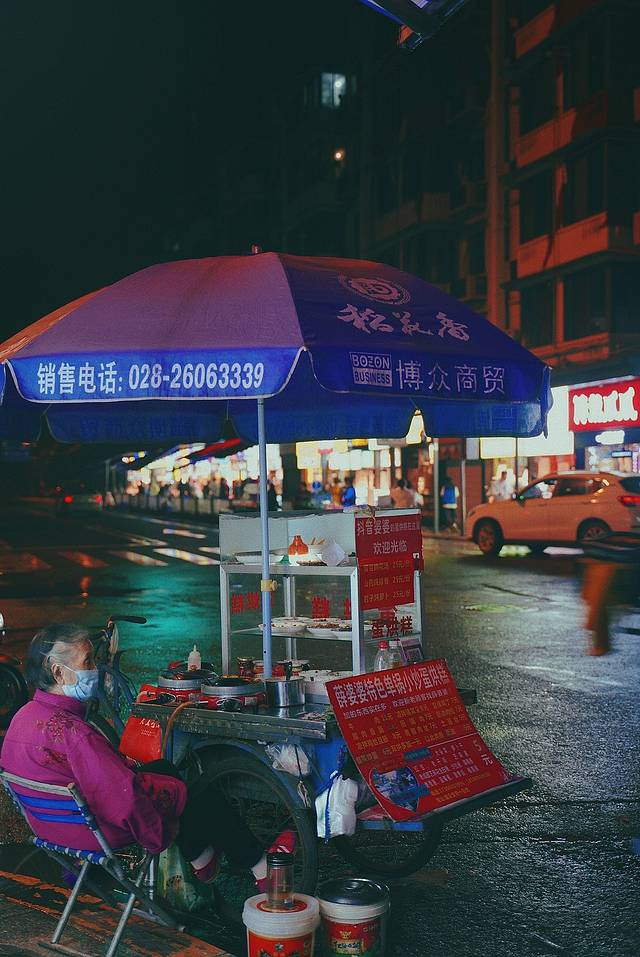 这个小推车,是好多成都人从小吃到大的串串。没有名字,没有固定地点,都是闻着味来,或者跟老板混个脸熟。