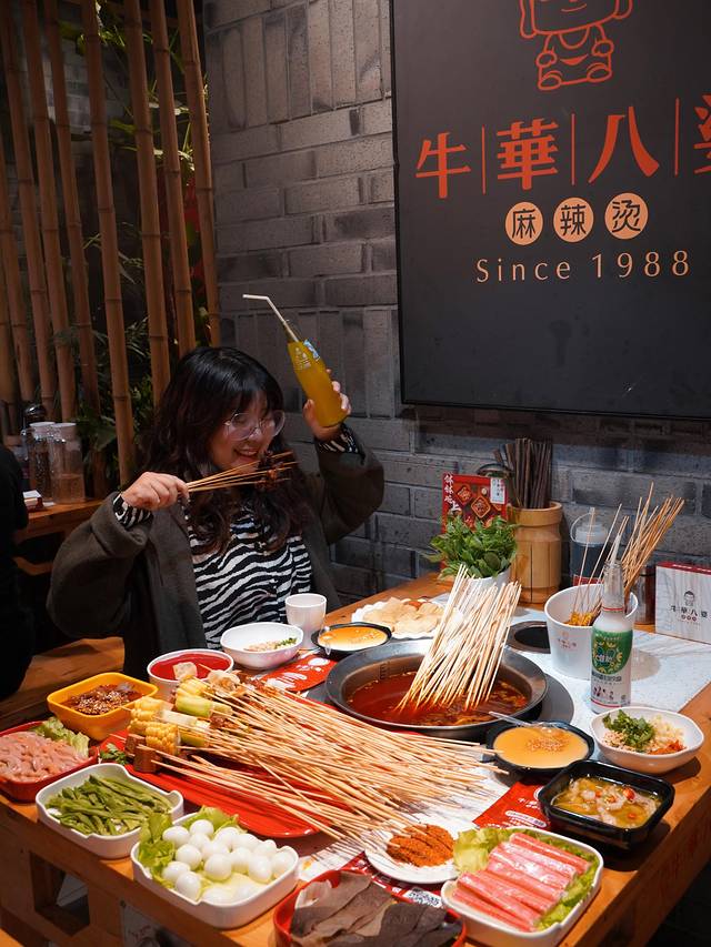 傍晚时分的成都天仙桥,车水马龙与人群熙攘是繁华表象,等到灯火阑珊中,麻辣鲜香的味道终于俘获了你的胃。这里有很多美食,还有一些新起的打卡店。牛华八婆麻辣烫,四川元老级的串串,之前在《舌尖上的中国》里看到的时候,就馋得不行!看了《天天向上》之后就按耐不住了,赶紧扯上朋友来了。