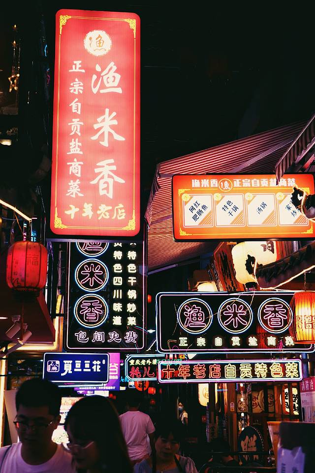 说点正经的,这条巷子不长,也就一两百米。这里找不到太多小吃的身影,主要是川菜、火锅、串串的天下,也有甜品、西餐、酒吧的一席之地。